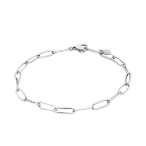Realizzata in acciaio inossidabile color argento, la catena ha una lunghezza totale di 21 cm – composta da una parte principale di 15 cm e da una sezione regolabile di 6 cm – garantendo una vestibilità perfetta per ogni polso.
