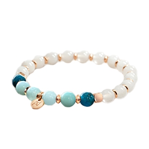 Il resto del bracciale è interamente composto da Pietra di luna, una gemma apprezzata per la sua luminosità madreperlacea e il suo dolce gioco di luce, a volte bluastro.
