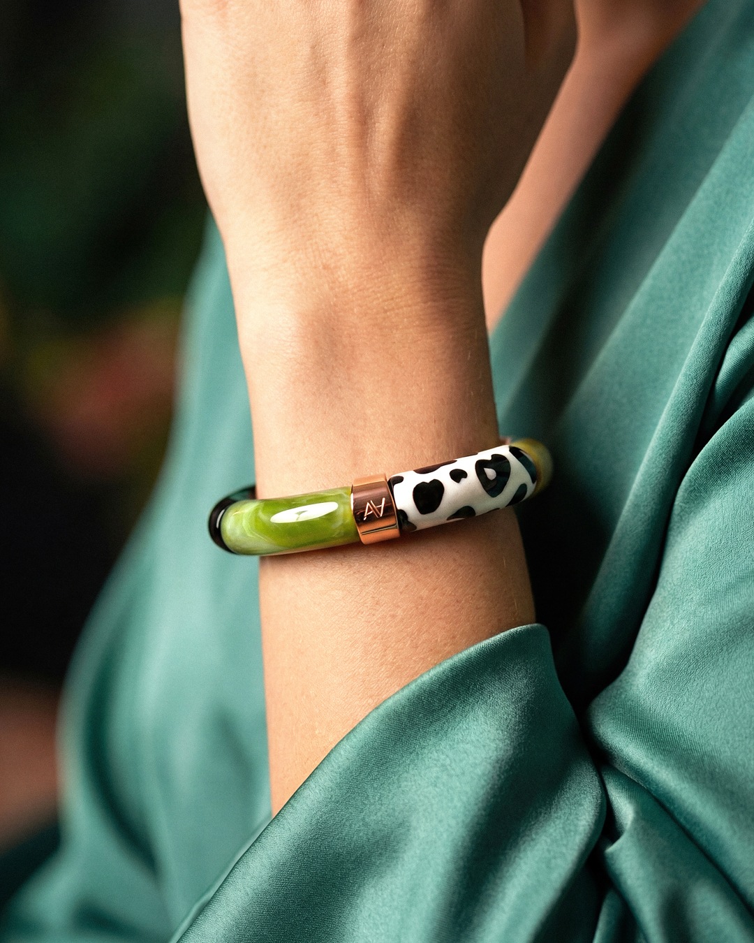 Lasciatevi sedurre da questo bracciale artigianale in acetato, simbolo di un lusso accessibile e di una moda responsabile.