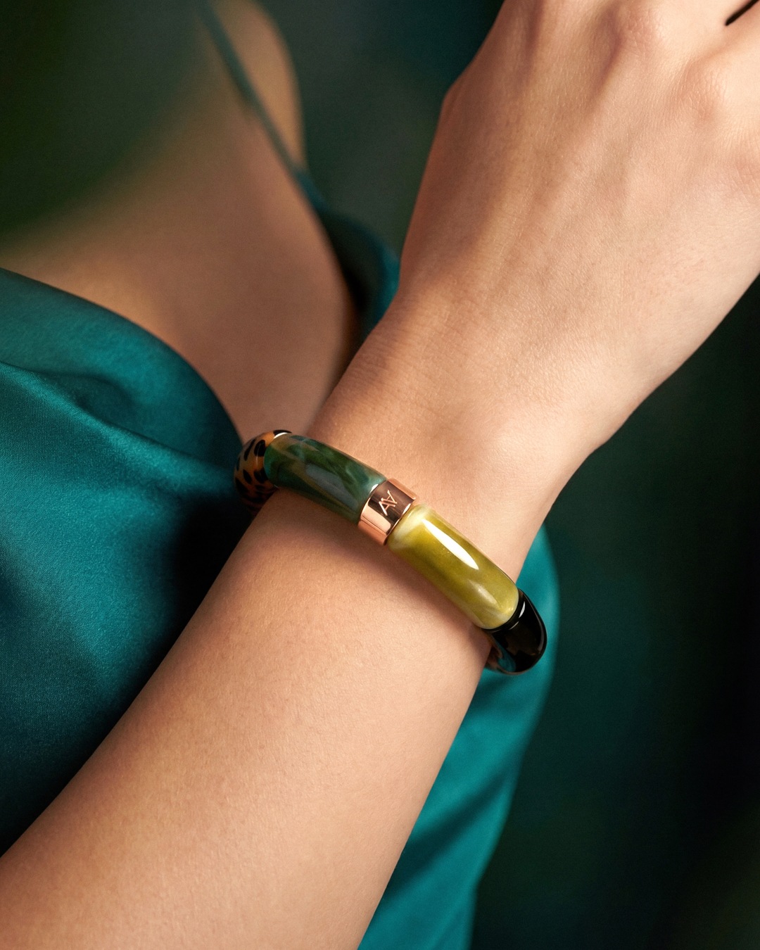 Lasciatevi sedurre da questo bracciale artigianale in acetato, simbolo di un lusso accessibile e di una moda responsabile.