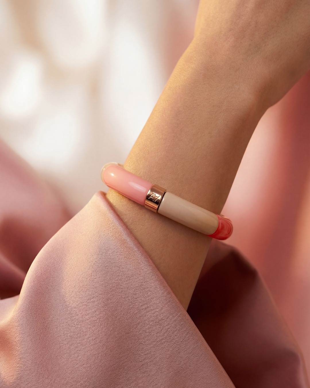 Lasciatevi sedurre da questo bracciale artigianale in acetato, simbolo di un lusso accessibile e di una moda responsabile.