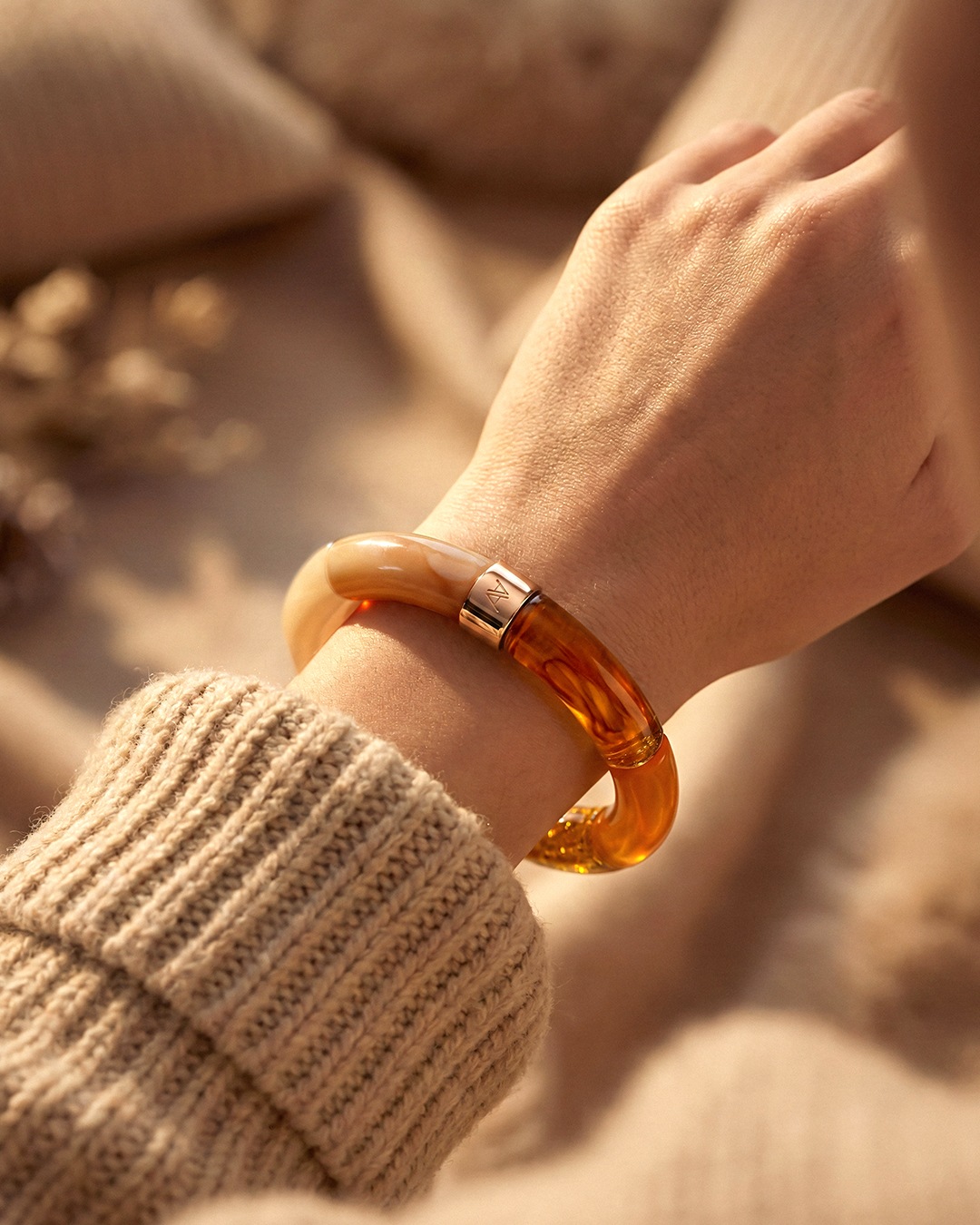 Lasciatevi sedurre da questo bracciale artigianale in acetato, simbolo di un lusso accessibile e di una moda responsabile.
