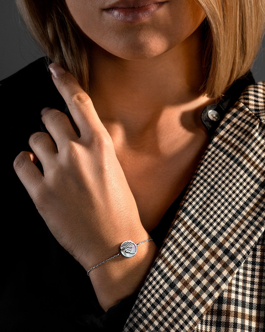 Con una lunghezza di 16 cm e dotato di una catenina regolabile fino a 4 cm, si adatterà facilmente a tutti i tipi di polsi per una lunghezza totale di 20 cm.