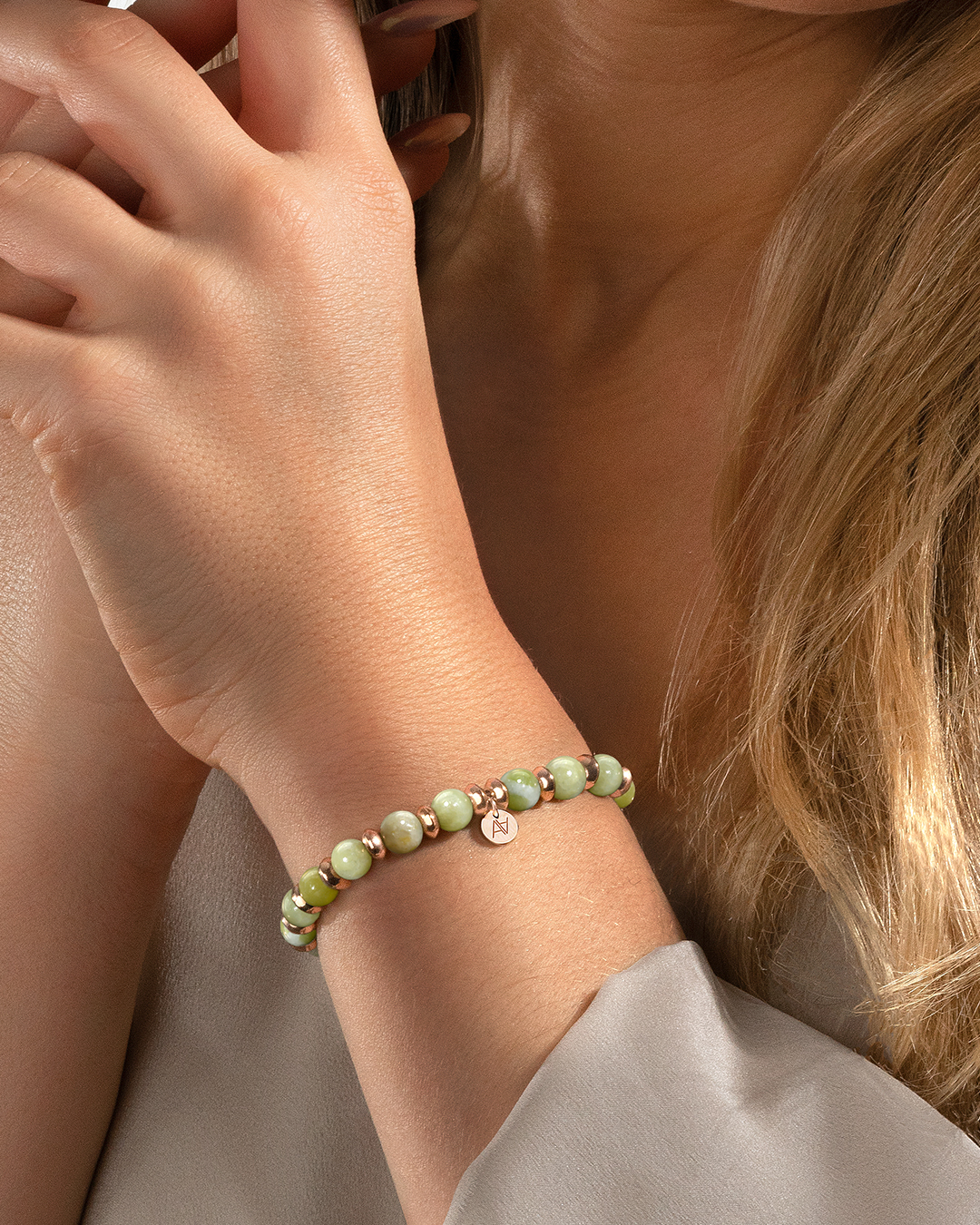 - Materiale del braccialetto Acciaio rosa inossidabile e jade di Peridoto