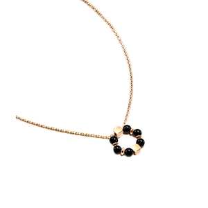 Il bracciale Nerona è composto da una delicata catena in acciaio inox rosato, impreziosita al centro da un motivo floreale in Onice, intrecciato con un anello martellato in acciaio rosato.