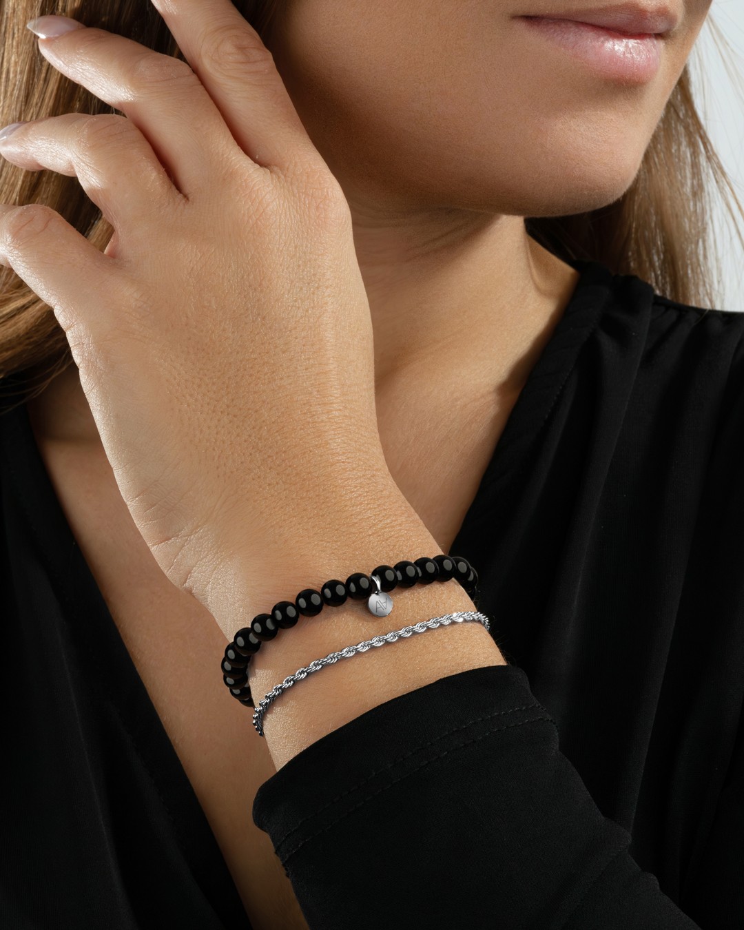 - Materiale del braccialetto Acciaio inossidabile argentato e Onice