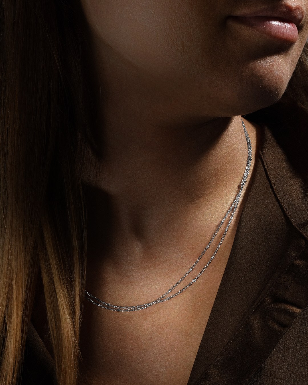Il collier Mayanina è un collier doppio, ornato di piccole perle in acciaio inossidabile argentato. Questo collier ha una lunghezza totale di 50 cm, con una parte principale di 43 cm e una sezione regolabile di 7 cm, permettendo così di adattarsi a tutte le morfologie.